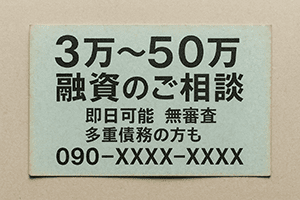 連絡先が携帯電話の番号しかない「090金融」や、法外な金利を要求する「トイチ(10日で1割の利息)」なども典型的な闇金です。